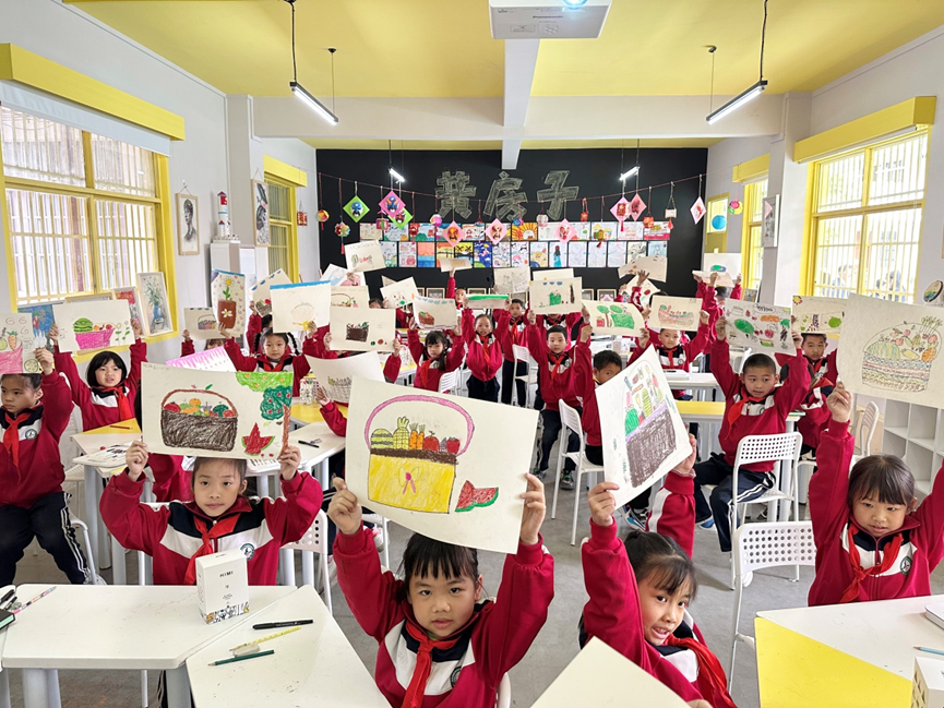 为助力广西偏远地区美育教育发展,2021年6月,中国红十字基金会通过广西红十字基金会援助30万元,分别在百色市田阳区那坡镇中心小学和崇左市宁明县城中镇第三小学援建“黄房子”项目美育教室。项目落地后,不仅切实解决了家庭困难学生“喜爱美术却难圆学画梦”的后顾之忧,更通过系统的美育课程,为学生提供美学能力启蒙与培养的平台。同时,依托项目开展的特色教学,还推动了壮乡文化、骆越文化的保护与传承,为当地教育事业注入新活力,也为怀揣艺术梦想的孩子搭建起通往美学世界的桥梁。